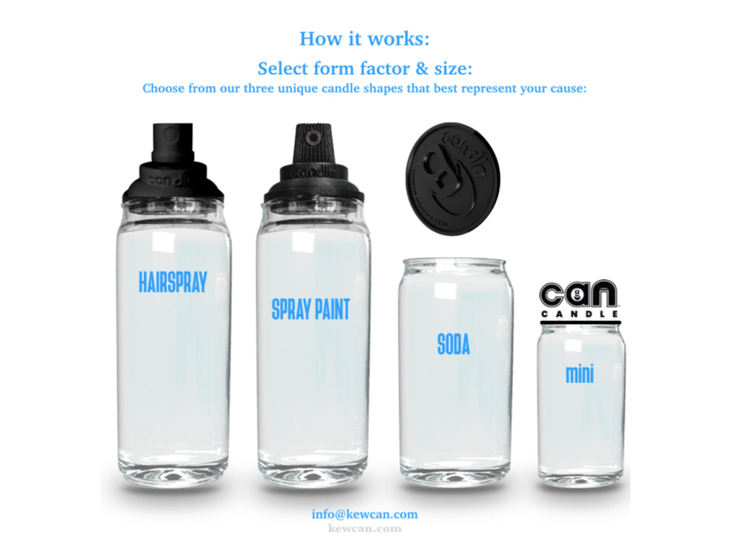 CANcandle is a collection of innovative, customizable candles designed to light up lives through bold design and purposeful packaging.